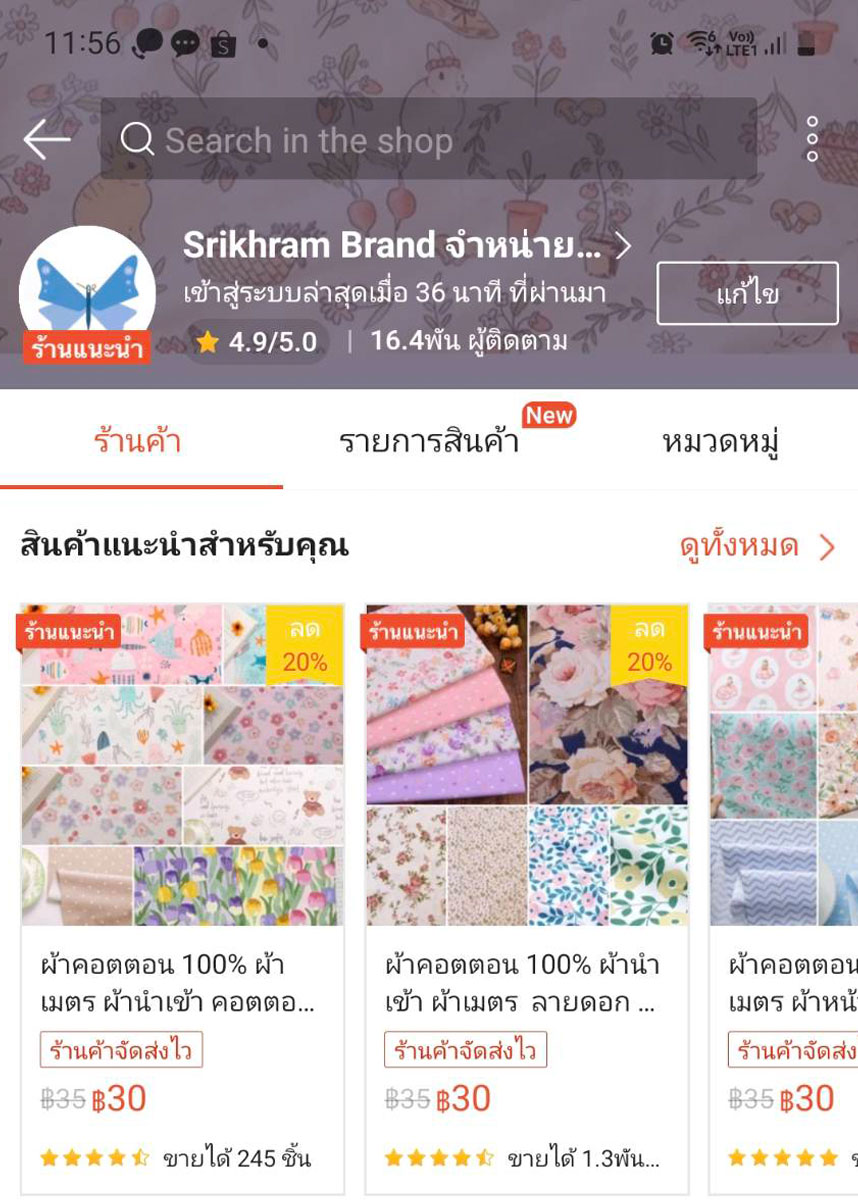 ร้าน ศรีคราม แบรนด์ จำหน่าย ผ้าเมตร แบบแบ่งขาย และ ยกม้วน